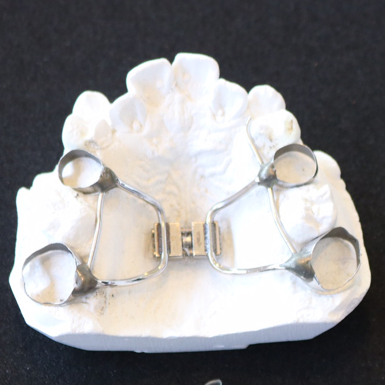 取り外し式の装置を口の中に入れ、こどもの成長に合わせて少しずつ歯列の幅を広げることで自然な歯並びへと誘導する矯正方法です。
