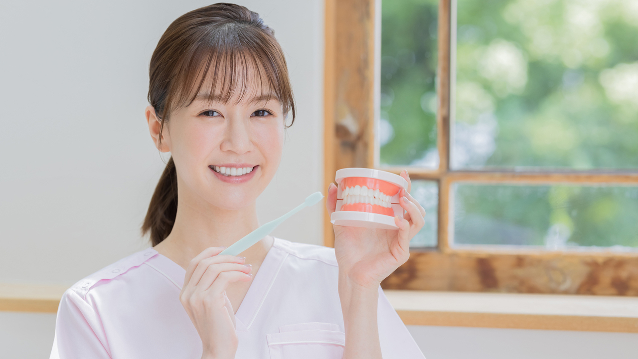 歯科衛生士とは、歯科医療業務を行うための国家資格を持った専門職です。当院には10年以上(※)のキャリアを持つ経験豊富な歯科衛生士が在籍。その専門知識と経験をもとに、歯みがきの方法や生活習慣などについてのアドバイスを行います。ぜひ積極的にご利用ください。